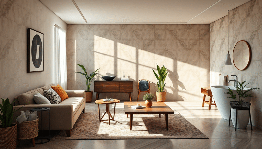 Consistency & Flow: Match wall and floor tiles with furniture, fixtures, and décor for a cohesive look.