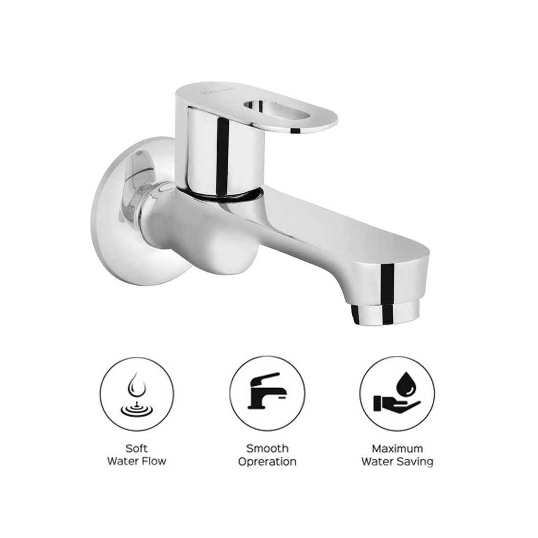 Kerovit Trendy Silver Chrome Finish Long Body Bib Tap with Flange, KB2111033 is an aesthetic bathroom faucet. This bathroom faucet does have Chrome finish. The Silver bathroom fitting looks very elegant and stylish. The package contains 1 Piece. This product belongs to TRENDY series. Kerovit offers one of the best quality bathroom faucets available online at the best price.